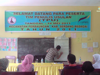 Pelatihan Tim Penulis Usulan (TPU) Tahun Anggaran 2011 kecamatan Perbaungan dilaksanakan hari sabtu tanggal 14 Mei 2011. Sebelumnya persiapan pelatihan dilakukan oleh TIM Organizing Comitee (TIM OC), baik itu lokasi dan keuangan. Pelatihan ini dibuka oleh BKAD (Adnan. S) pukul 10.00 wib. Materi pelatihan di sampaikan secara bergantian oleh narasumber ( FK/Darmat Kristiani Laoli, FT/Fahri Ibrahim Siregar dan Penlok/Saiful Anwar). Materi pertama tentang Alur PNPM dan TUPOKSI Tim Penulis Usulan disampaikan oleh Darmart Kristiani Laoli (FK) sampai istirahat siang. Setelah istirahat latihan dilanjutkan dengan materi penulisan proposal sarana prasarana yang di fasilitasi Fahri Ibrahim Siregar (FT). Penyampaian materi ini di lakukan dengan penjelasan pendahuluan selanjutnya dibikin simulasi pengisian formulir yang harus diisi dalam proposal. Materi III adalah tentang proposal usulan SPP yang disampaikan oleh Saiful Anwar (penlok). Seluruh peserta mengikuti pelatihan dengan antusias sehingga menimbulkan suasana menjadi hidup. Banyak pertanyaan-pertanyaan yang dilontarkan dan di jawab oleh narasumber dengan melakukan simulasi langsung. Diharapkan setalah pelatihan seluruh peserta dapat melaksanakan tugasnya dengan baik. Batas waktu terakhir pengumpulan proposal di kecamatan adalah tanggal 19 Mei 2011. Yang menjadi target pelatihan TPU ini adalah ada usulan SPP yang masuk ke kecamatan karena untuk fisik masih ada sisa usulan tahun sebelumnya.